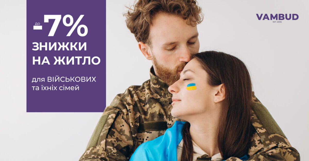 Для військовослужбовців та їхніх сімей діє спеціальна пропозиція на купівлю житла від VAMBUD з вигодою від 5% до 7%.